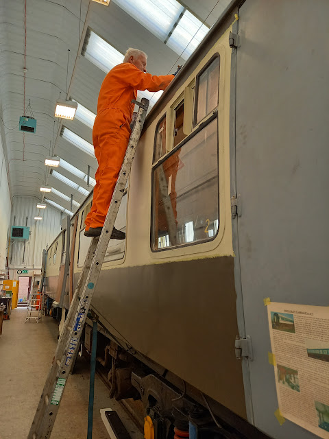 On now to RBr 1675 where Roger is top coating another window on the Malvern side of the coach. The little brush makes getting into all those nooks and crannies so much easier and produces a better job.