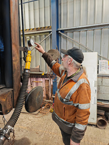 As this was the only static thing for the morning, plenty of people got involved. Clive went round with a hammer and cold chisel to get rid of the few remaining stubborn bits of scale that the grit-blaster didn't touch.