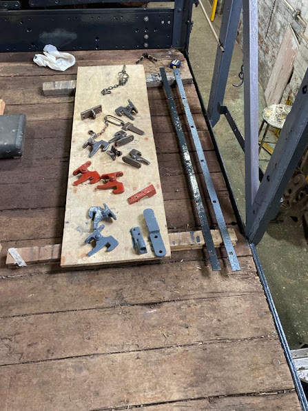 [Photo : Paul E.] The wide variety of fittings, cleaned up and gradually being primed with red oxide or green primer, and then undercoated.